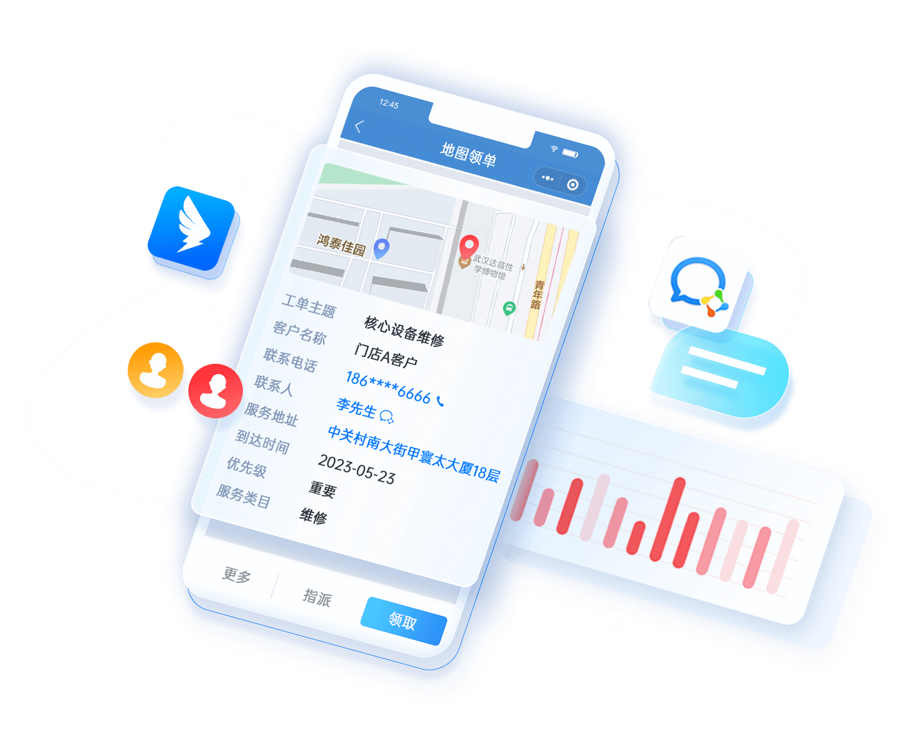 • 按區(qū)域/工單類型/產(chǎn)品類型進行地圖派單、手動派單和工單池搶單